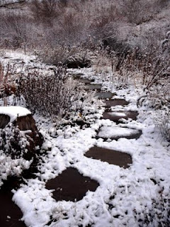 The world outside our windows is full of motion and light today. Fat drops of water are falling steadily from the icicles on the eaves. Wind is pushing walls of snow across the landscape. Birds are stretching their wings in the almost-forgotten joy of brilliant sunshine that pours like water through the bare branches and down across the hillsides. I couldn't put my boots on fast enough this morning. I had to get out into the glory of the morning!